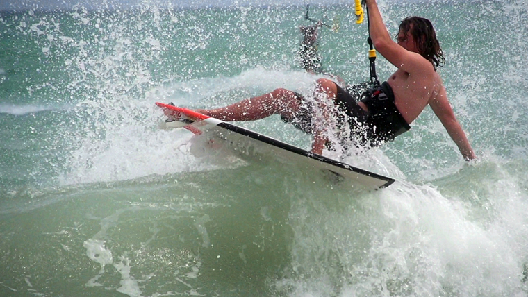 So what you have now is the kite that can surf quite well, It's always foiled very well, but it foils even better now. It's a kite that you can go out there and launch massive jumps on if you're a free rider. If you're looking at getting into the waves a little bit it will still help you in those free ride situations but then you can advance your wave skills. The drifter is really a kite that's turned into a little bit of an allrounder. It doesn't have quite the low end as the Switchblade, it doesn't have quite the power as the Switchblade. However, if you're looking for a kite to take in the waves or for foiling that crosses over well, this is the kite you want to be on. Whats nice is that when you reposition the kite, you turn it, or you loop it. It's not going to pull you off the board so it's got a really nice easy feel on the bar.