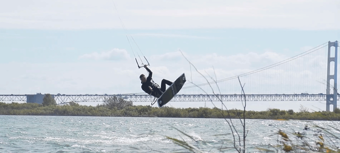 A properly powered kite will lift you onto the balls of your feet when you sheet in. If you’re getting popped off the ground you're using too much kite. Don’t be afraid to ride in light winds either. I see so many riders who don’t go when it's less than 20 knots. 15 to 20 is amazing for learning new tricks and working on improving your jumping.
