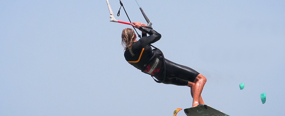 Come into this trick with a light pop and be subtle with sending the kite. You don’t want to come into this one too powered or the pop will toss you into a full backroll. Technically this is a backroll, but you are not doing the off-axis variation. You’re spinning a 360 with your feet dangling under you. Imagine you are doing an ollie on a wakeboard or a skateboard.