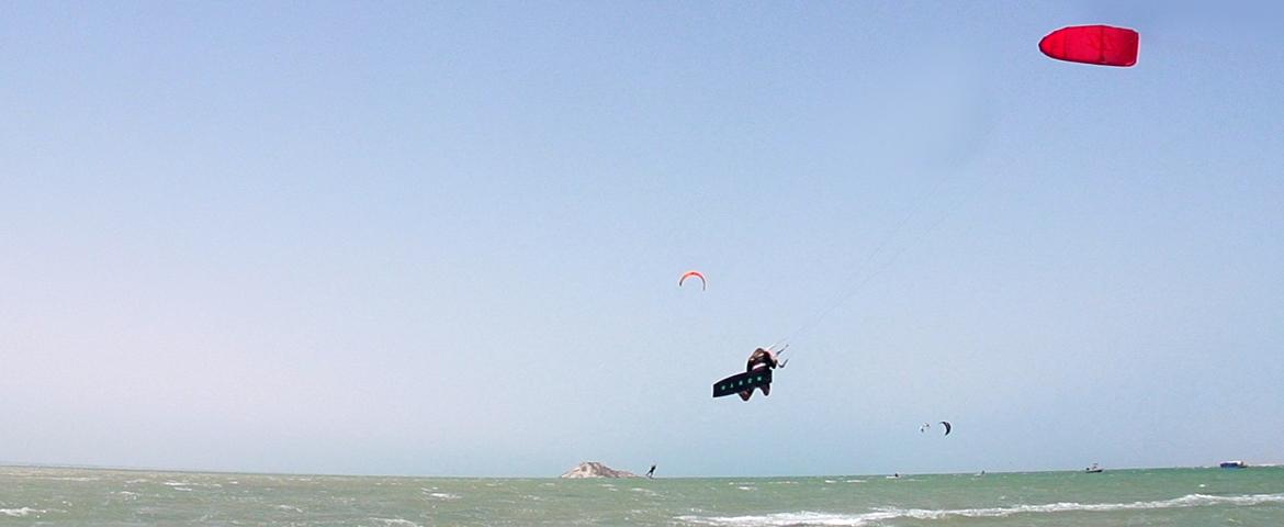 After you leave the water, you’ll want to sheet the bar out. This will stop the kite from pulling you too hard. As you’re sheeting out, the kite’s going to be traveling from the apex to the other side of the wind window. This loft period is when you will be doing your 360 spin.