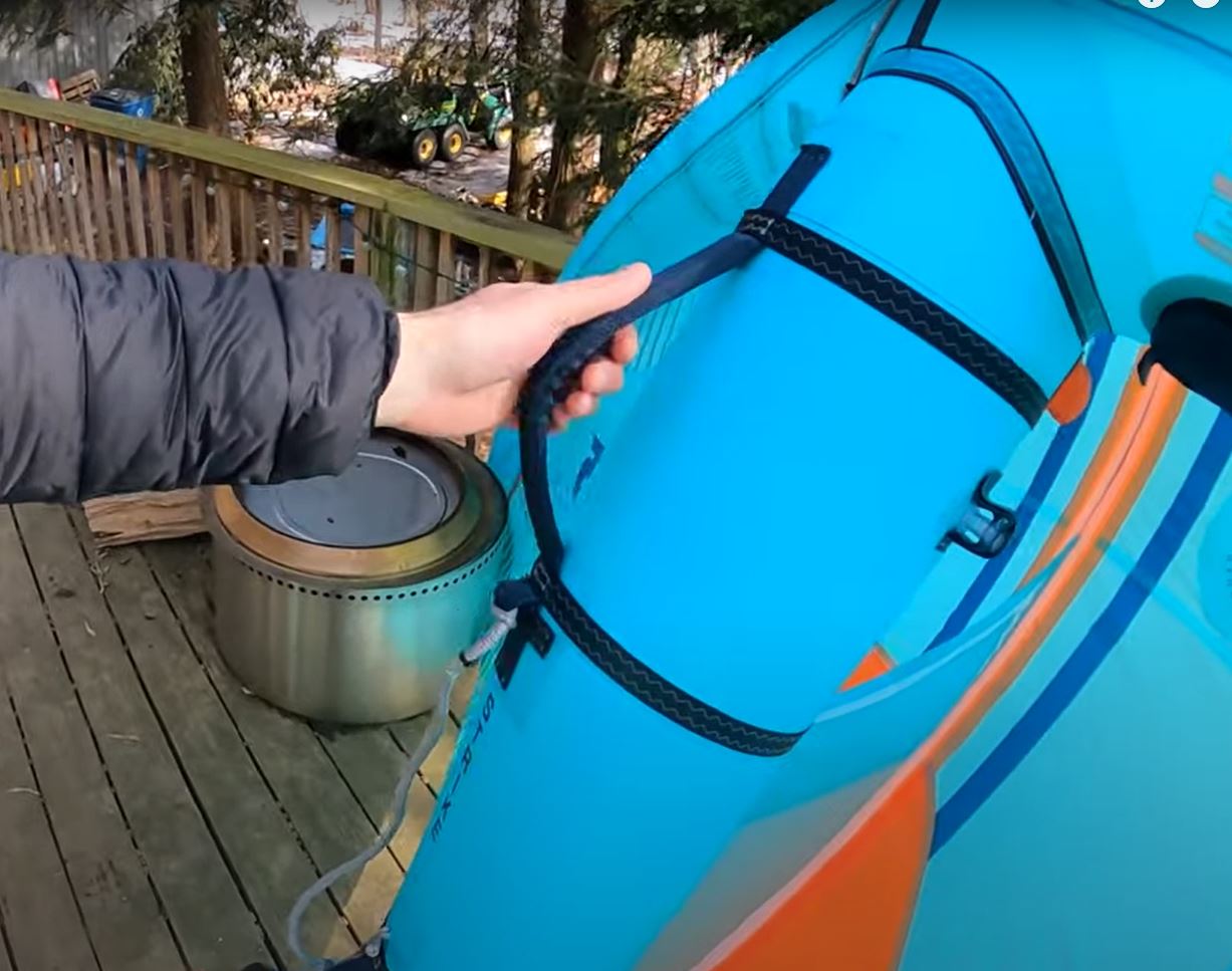 They opted for the more needly style valve, which will allow you to inflate this independently. We don't have a clip on the strut hose here, so if you did want to do that you need to add a clip, but it does dump nicely. That way you don't need to push it all out the leading edge, so it packs up quickly.