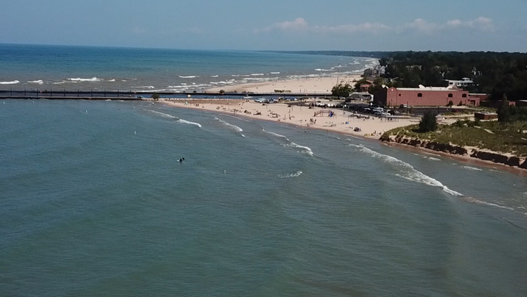 Tucker Checking out the waves in Michigan