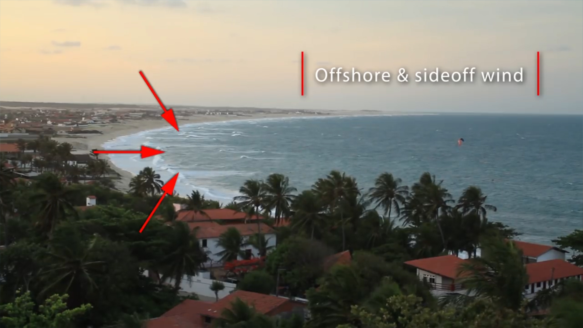 Wind directions can change depending on the shape of the coast. For example if you’re riding a sideshore day, near a point where the coast aggressively juts away. Past that point, the wind will be side offshore.