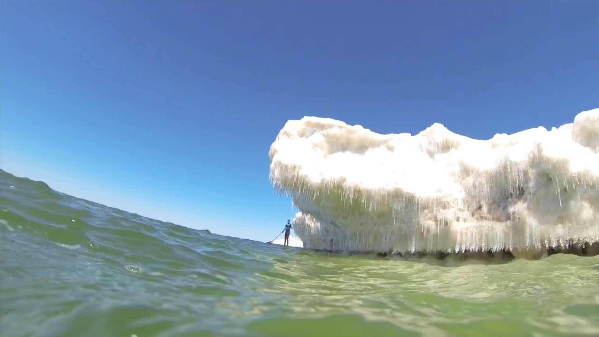 Pat Taylor of MACkite exploring the shelf ice on a standup