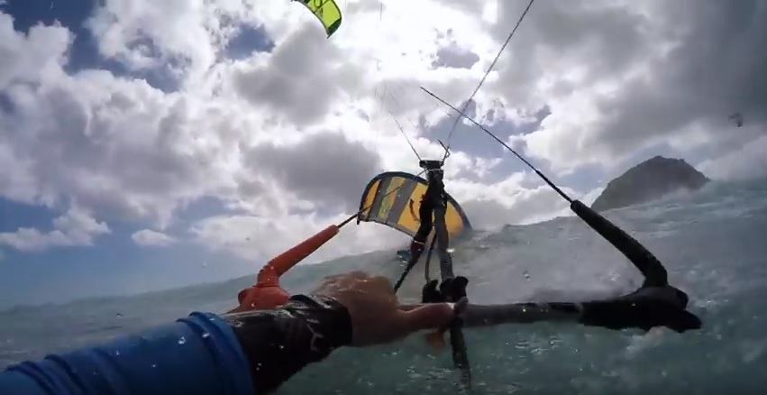 Kiteboarding can be considered a dangerous sport to those who do not know proper safety systems or how to self rescue. In this video, we see two kiters who had their kites collide. While one seems to have little knowledge, the other has the knowledge to free himself and to get the first kiter back into safety.