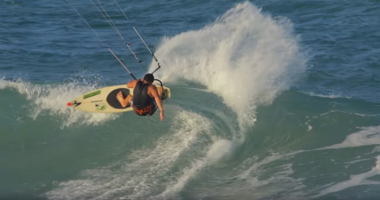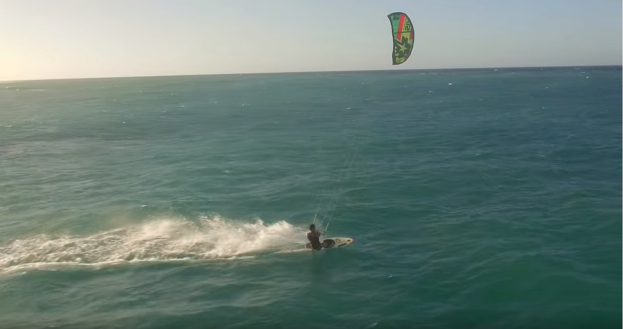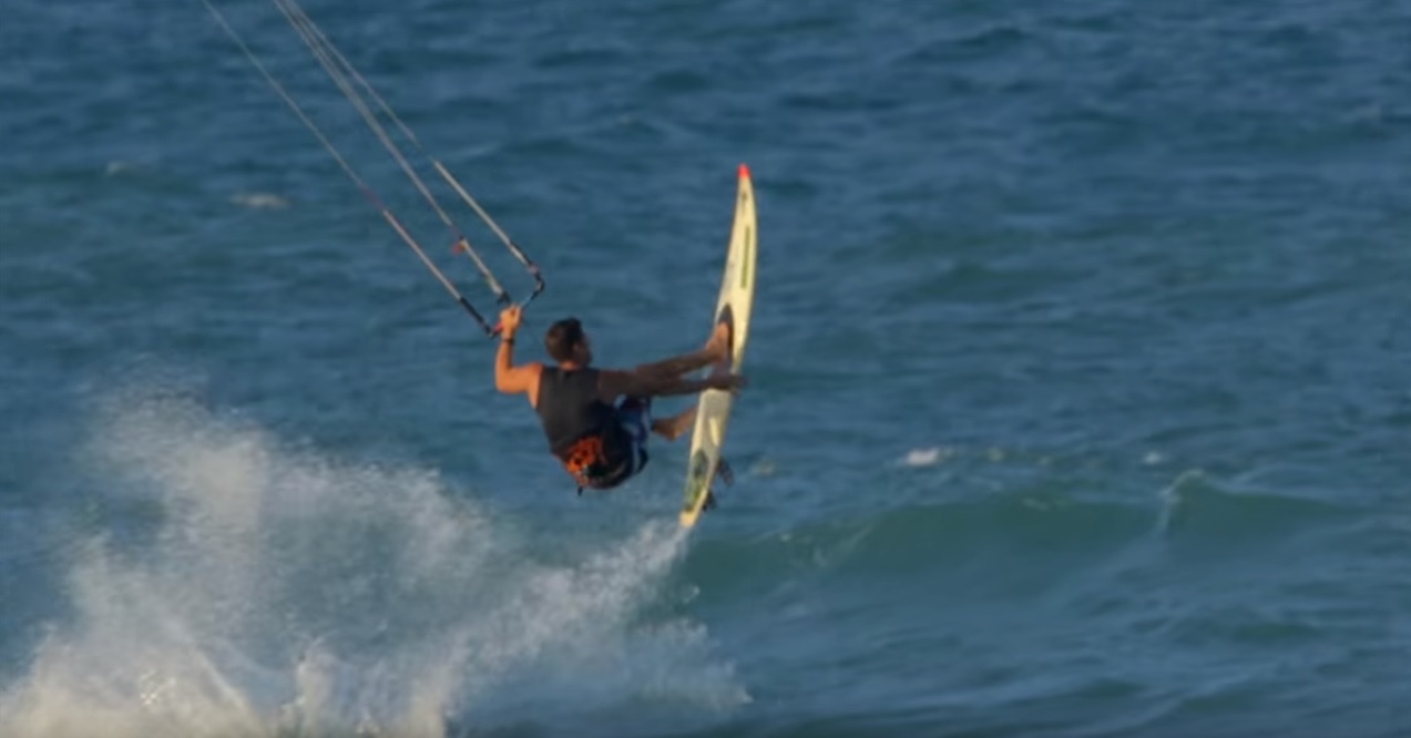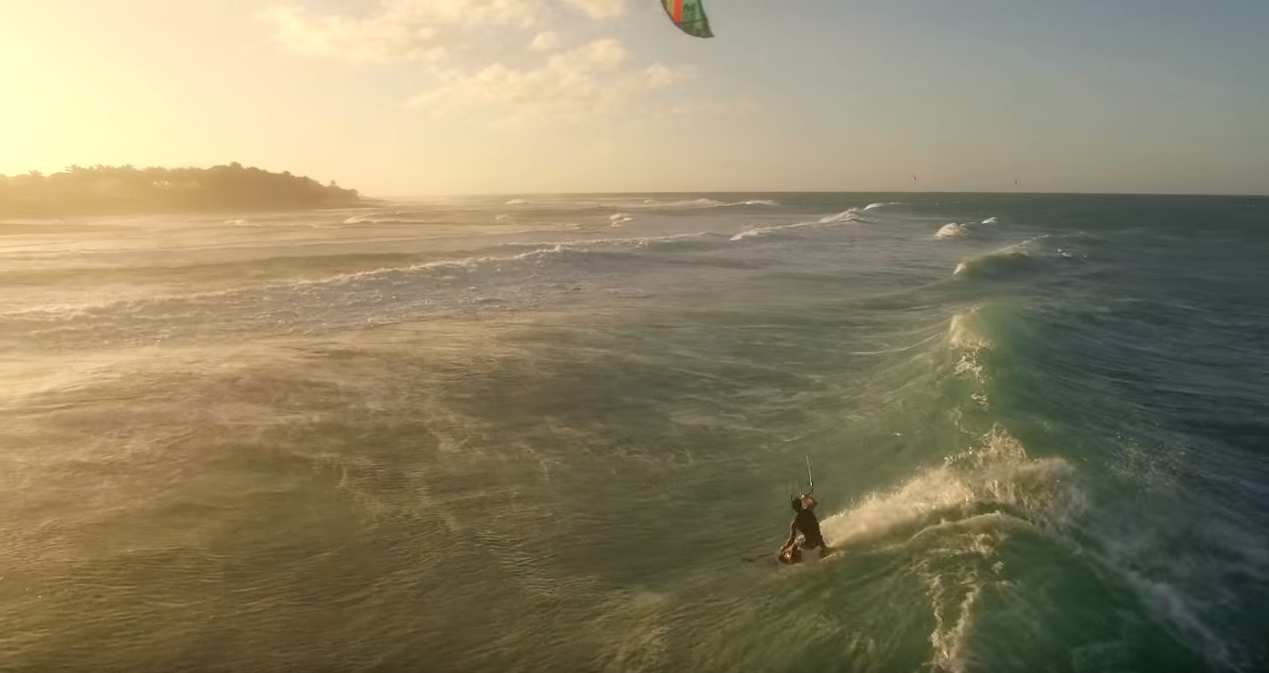 The late-December conditions give him the perfect opportunity to test out strapless kitesurfing. Pierret is able to ride wave after wave, without the tireless paddling that accompanies a regular afternoon of surfing. With no attachment to the board, Pierret is granted the creative freedom to try unique tricks. He carves and glides over the rolling water, effortlessly floating through the air. His flips, grabs and jumps are captivating, performed to a backdrop of smooth edm.