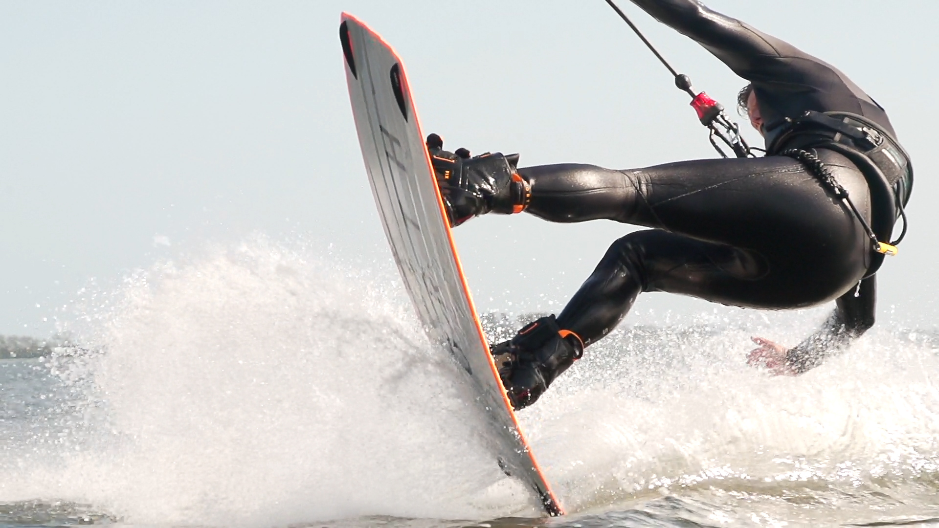 Keep the kite at 45 and get good speed. If you go slow, you will sink. Go slightly downwind and lean back. Put your weight behind your tail. Bring your back knee into your chest and poke the front leg out. Ride as long as you can and, as you feel yourself sinking, shift your weight back over the board and ride downwind to stay on a plane.