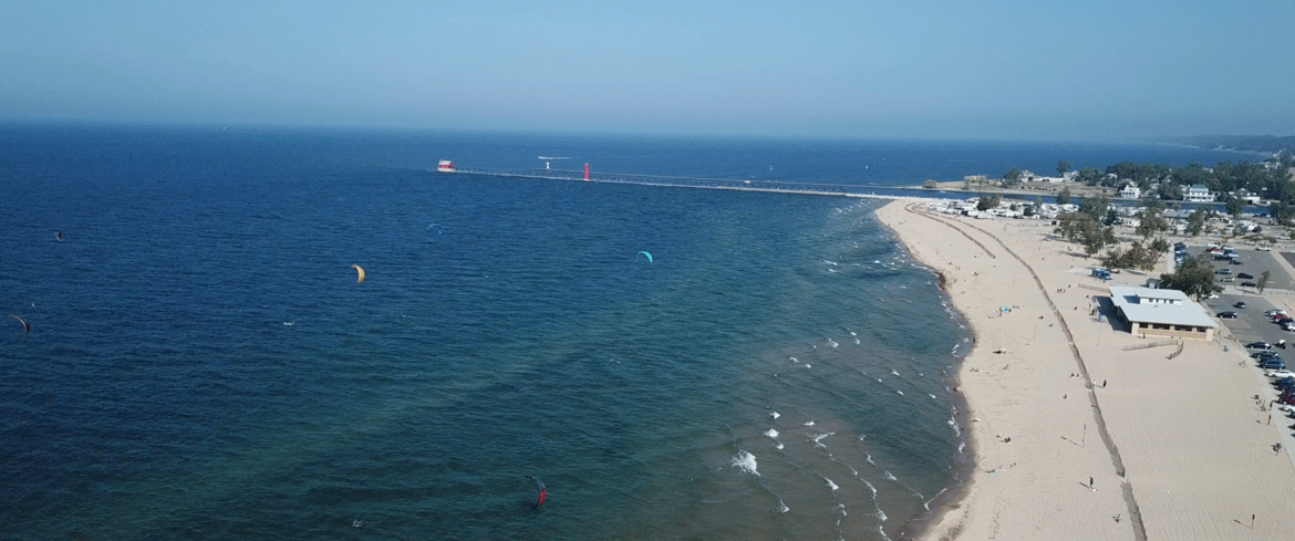 You can see an animated version of the PSA in the video. Riders will form a queue just upwind of the flat water near the Jetty, sandbar or whatever might be creating the flat water. The Green area is the trick zone. Avoid tacking upwind in here or freeriding. It should be reserved for tricks.