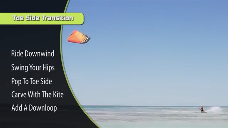 This week, were going to cover one of the first tricks you can learn in kiteboarding and one that you can use to add style to your transitions. The Toeside Transition with a pop to toeside, a smooth carve and a downloop.
