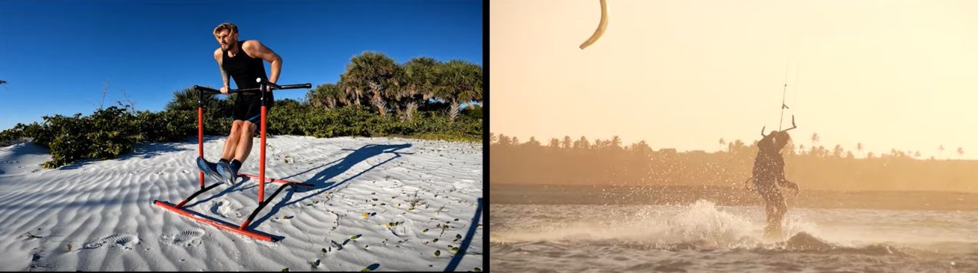 When it comes to working out, I've done a ton of routines over the past, and I've always made a point to follow something specific and written out by a coach or somebody whose job was fitness. I think following all of those basics is really important. I've done power lifting, I've done regular lifting, going to the gym with moderate weights, and what I found over the years is that calisthenics, where you're moving your body through space, transfer over to the kite the best. On top of that, they don't really take any equipment beyond an $11 pair of rings off of Amazon or a cheap pull-up bar. I found whenever I got into a routine where I was dedicated to calisthenics, I noticed a vast improvement in my kiteboarding and my core strength because you're moving your body as a cohesive unit, so you're using all of your muscles to move your body through space, which is the closest you can get to kiteboarding, as opposed to moving an external weight or trying to push something. Of course, all that stuff is really good and supplemental and I'm still a huge fan, but I've found for me that calisthenics are what translate over.