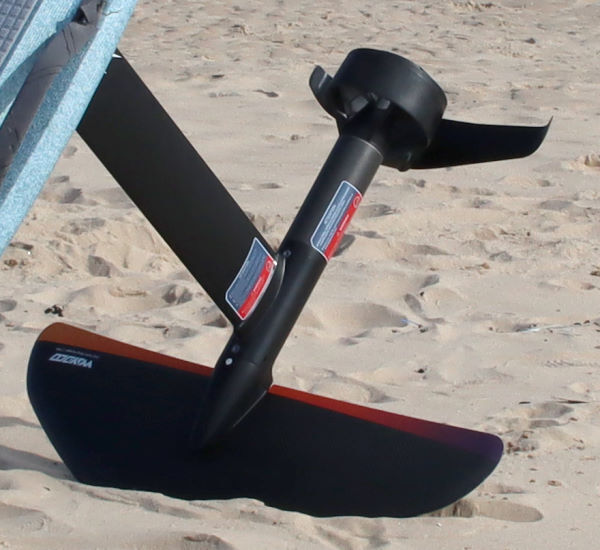 Designed for beginners, this eFoil board offers maximum stability, ensuring a secure and confident ride. It uses sensors and a proprietary algorithm with auto assistance when needed to make foiling easier. You can use a stabilizer wing extension rod or flyer pod to make it even easier.